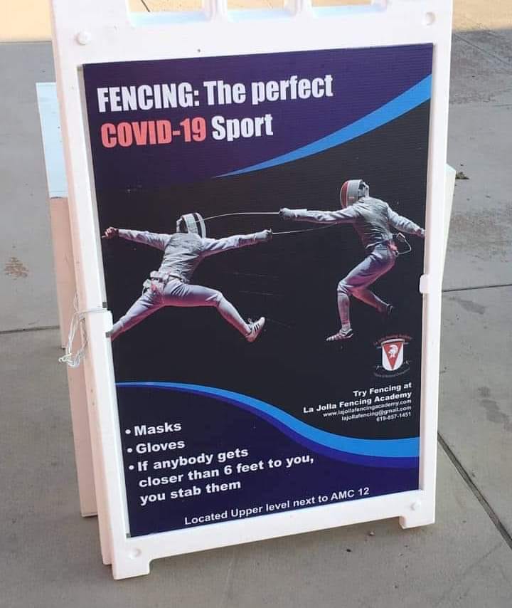 3. A screen capture or meme: Fencing The Perfect COVID-19 Sport